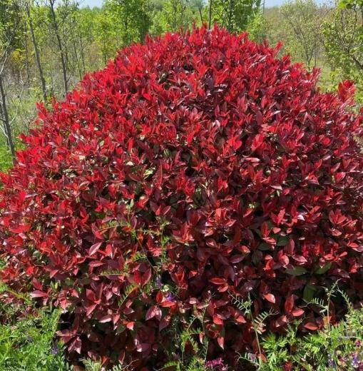 紅葉石楠球,以其全年保持紅色葉片的特性而著稱